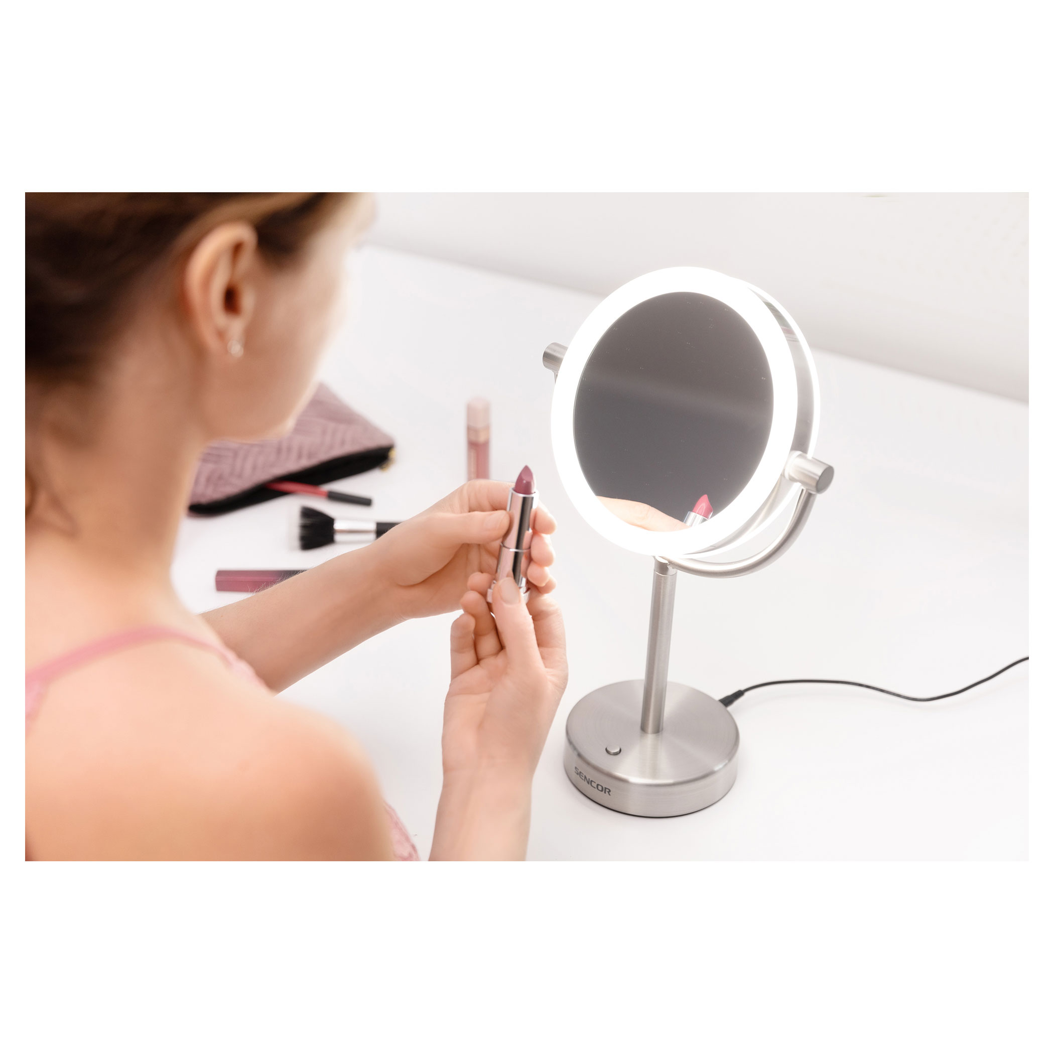 يوفر أحد الجانبين انعكاس قياسي للصورة، بينما يوفر الجانب الآخر تكبير بنسبة خمسة أضعاف وهو ما يتيح الاعتناء بشكل مثالي بكل التفاصيل.