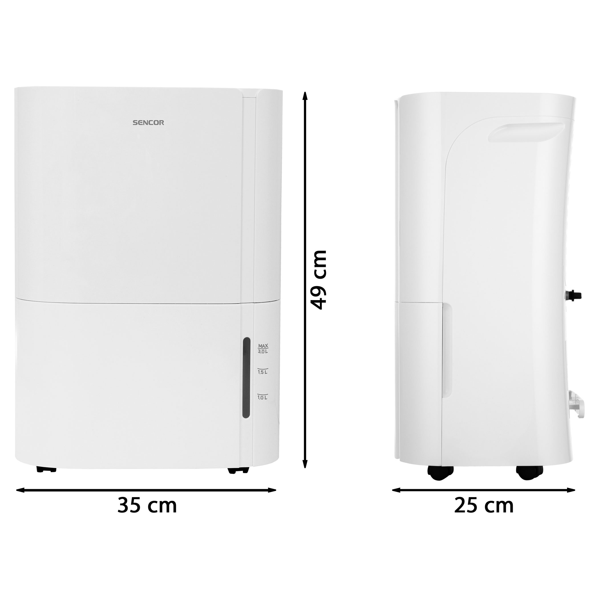 سعة خزان المياه: 2,1 لتر, يمتص الرطوبة حتى 10 لتر/24 ساعة, لغرف تصل إلى 31 متر مربع