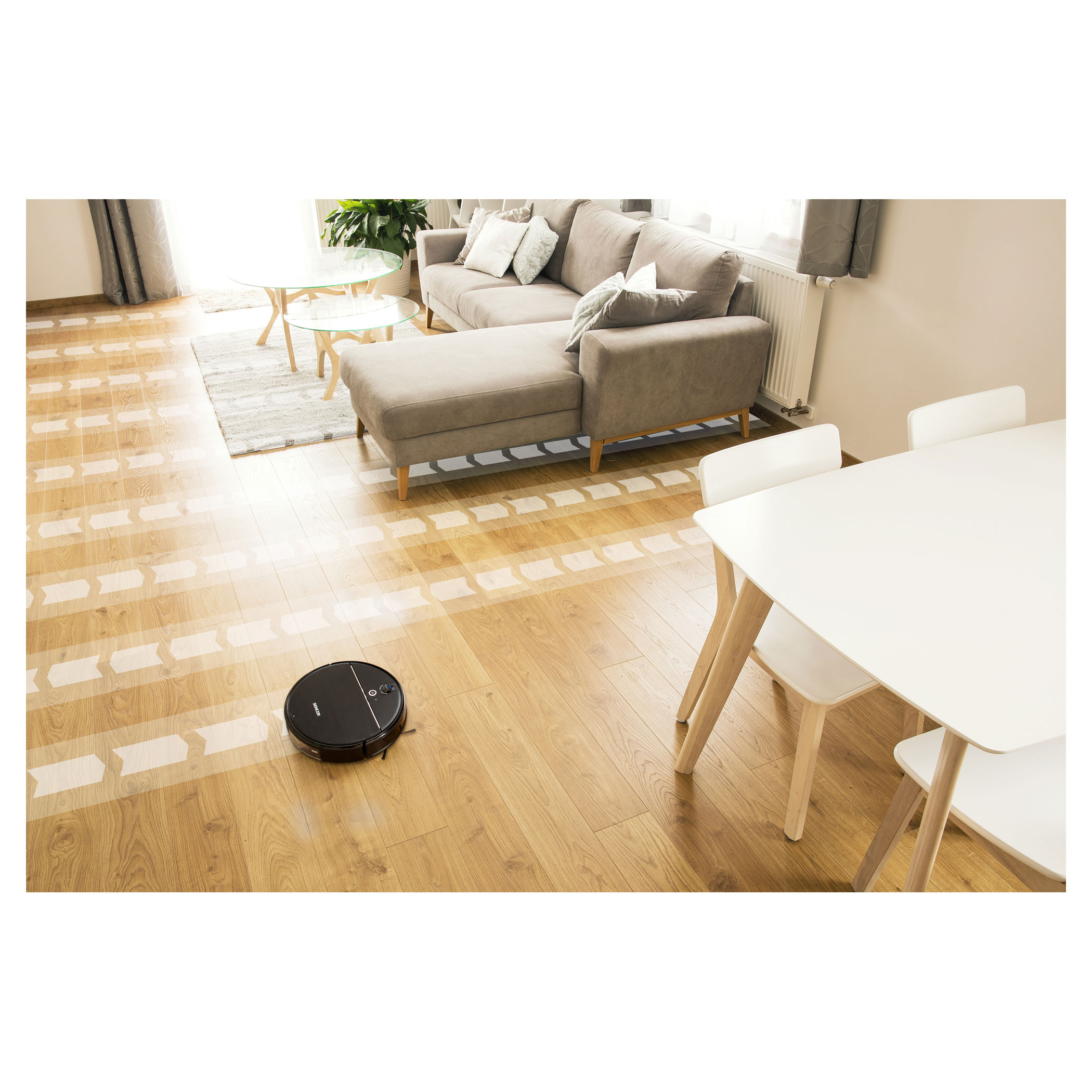 رجوع تلقائي إلى محطة الشحن بعد الانتهاء من البرنامج.