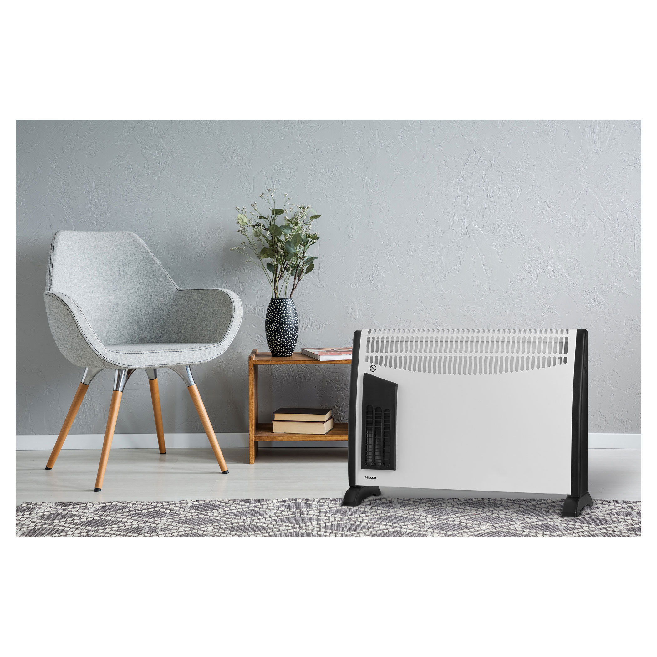 جهاز محمول - يمكن وضعه في أي مكان إعدادان لمستوى التسخين - 750/1500 واط ترموستات قابل للتحكم المستمر: 15–35 درجة مئوية