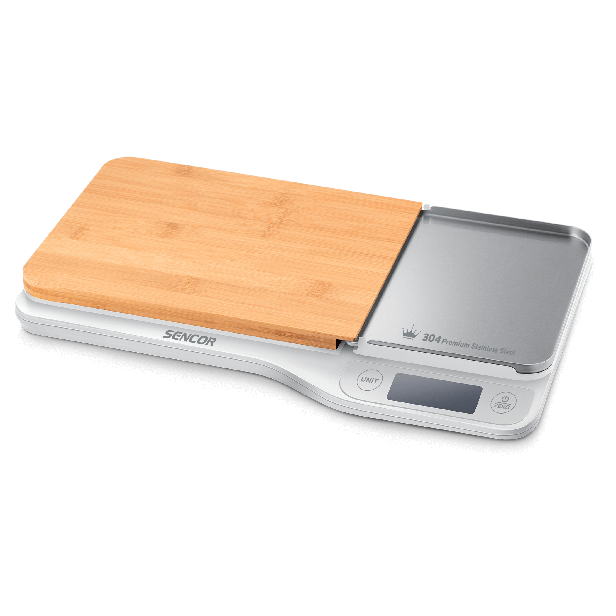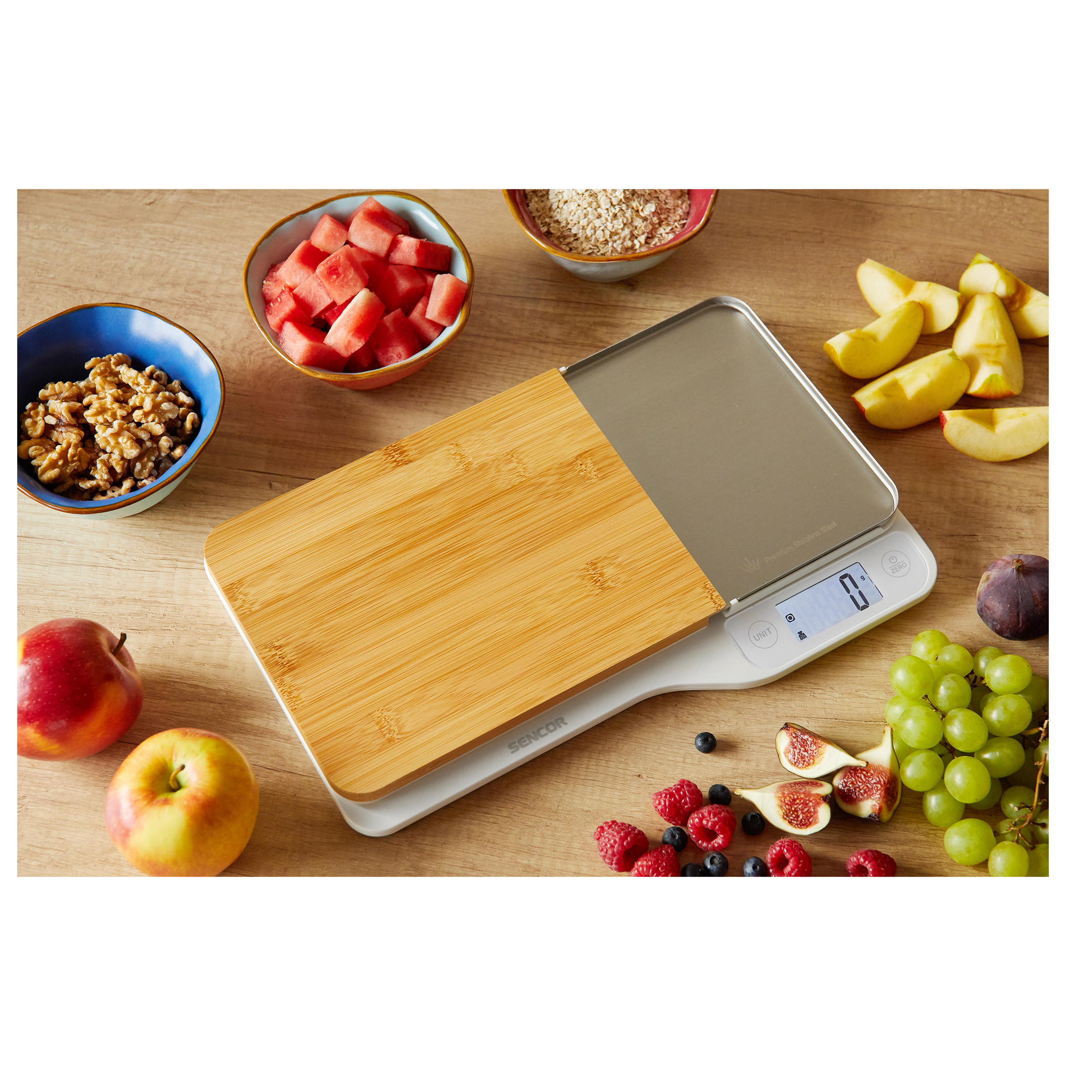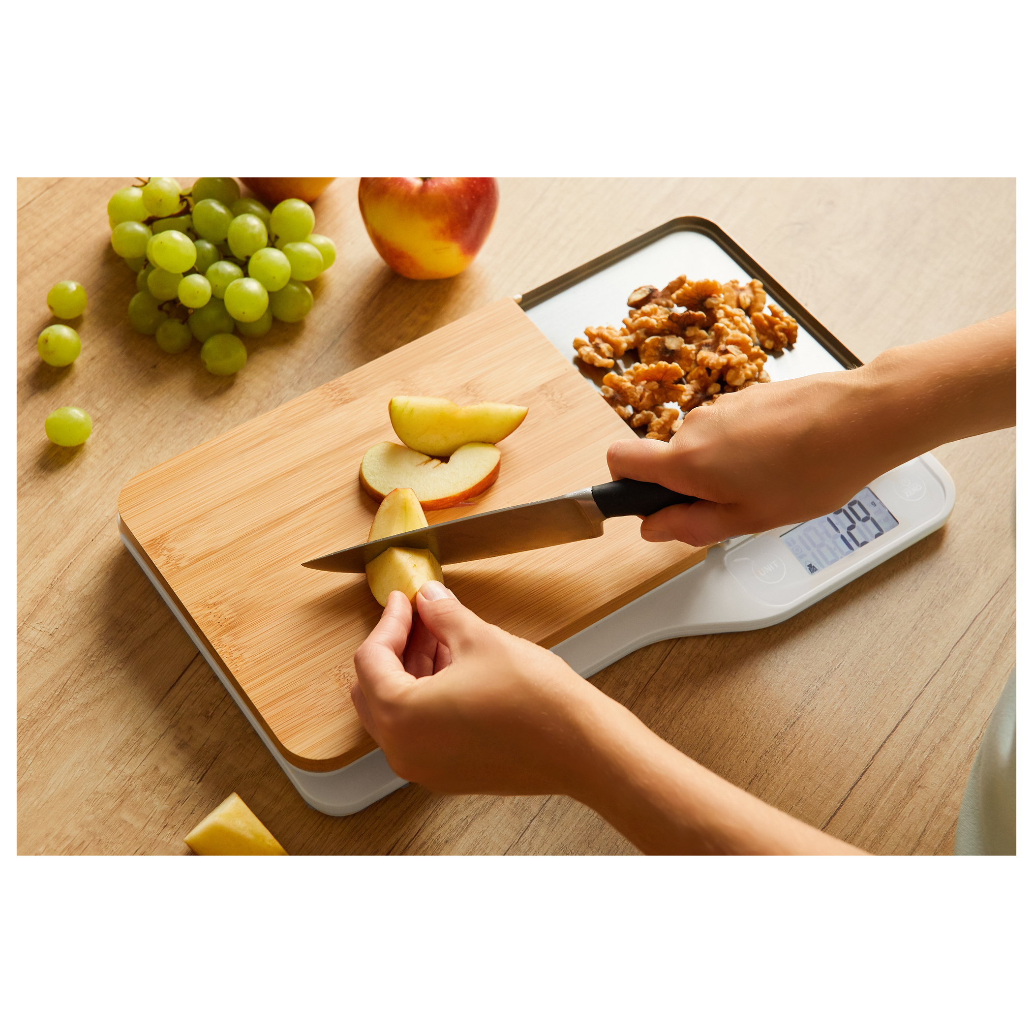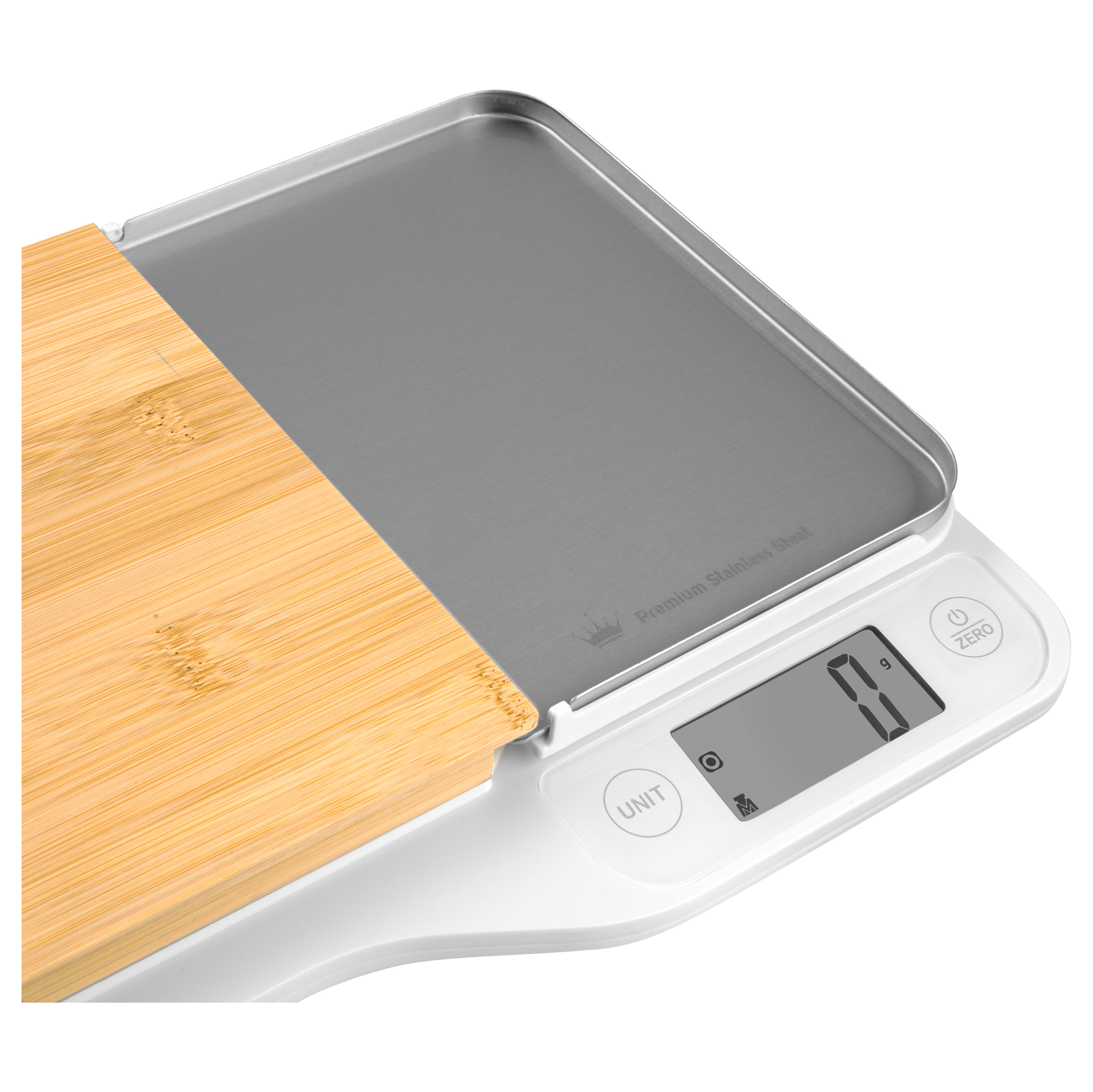 ميزان مطبخ إلكتروني مع لوح تقطيع من الخيزران الطبيعي و صينية ستانلس ستيل قابلة للفصل