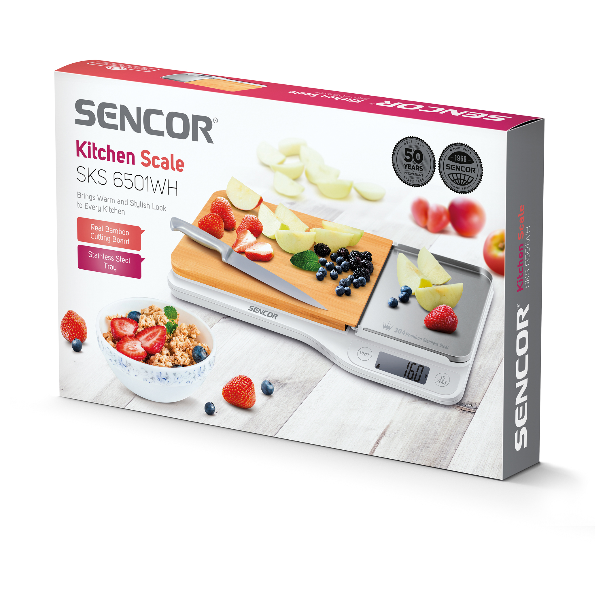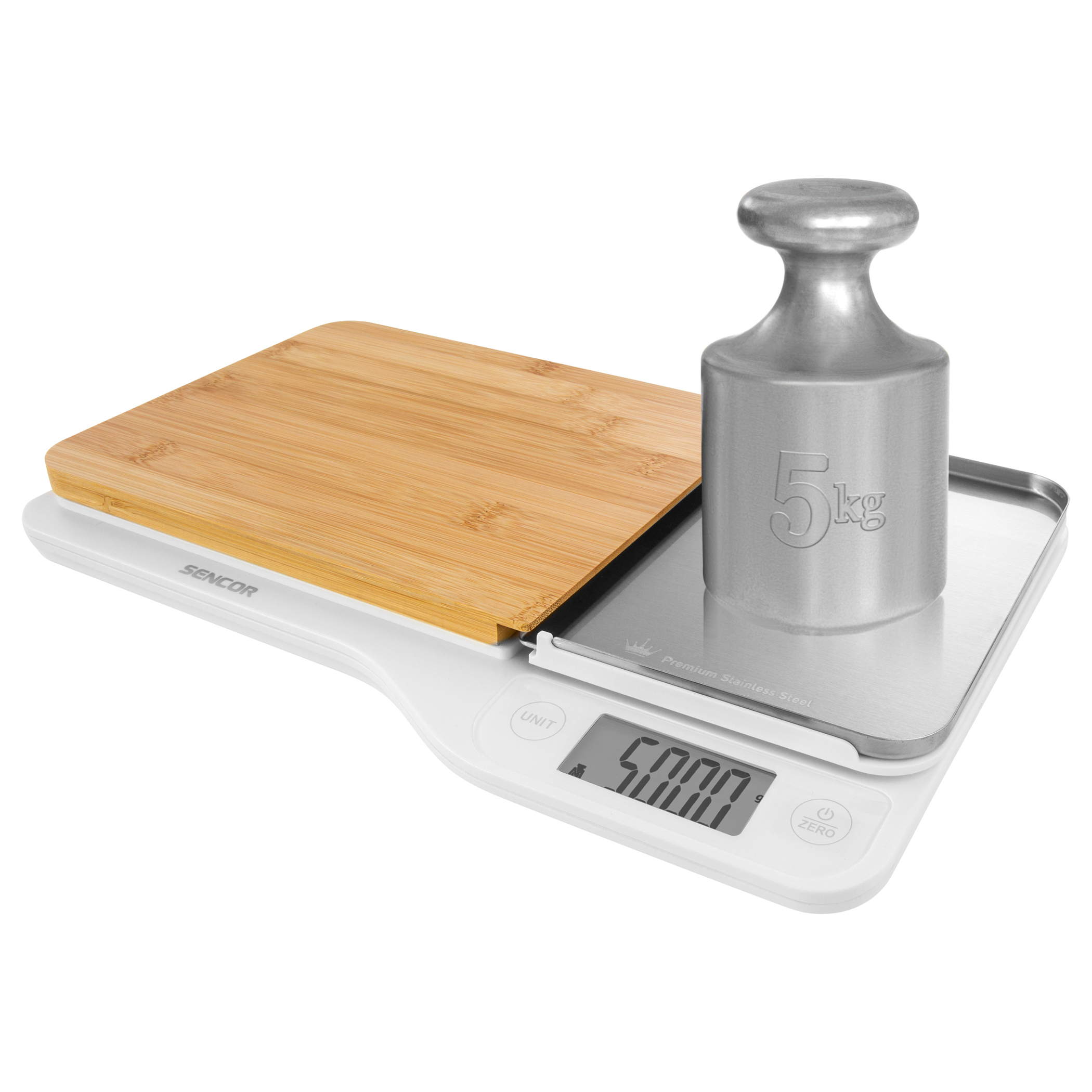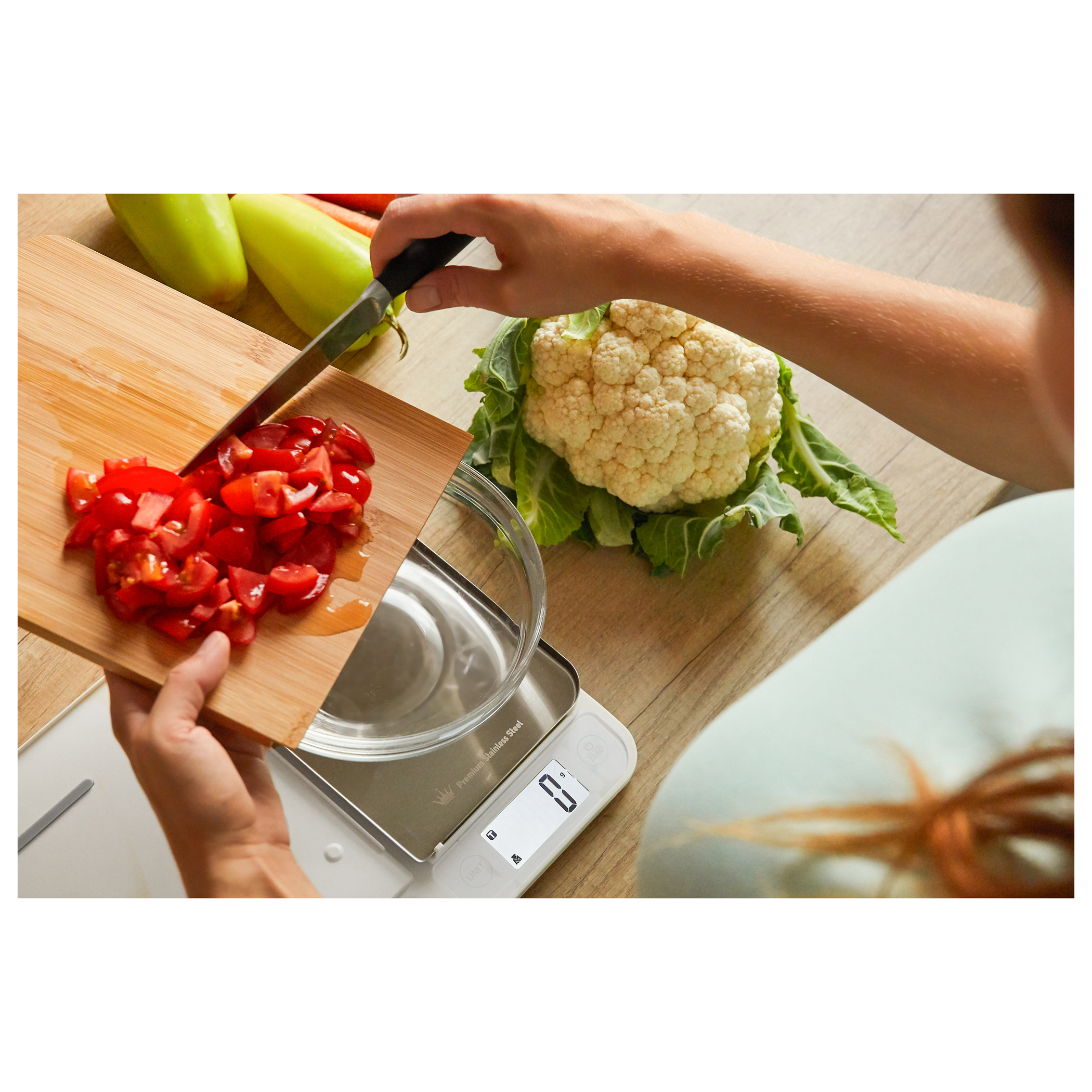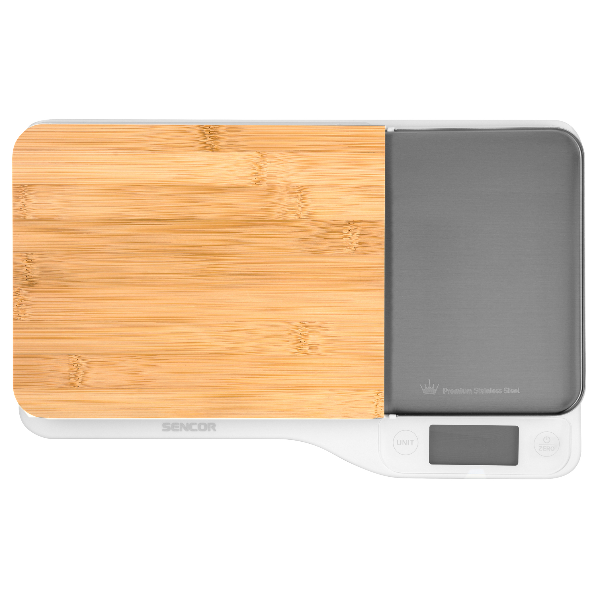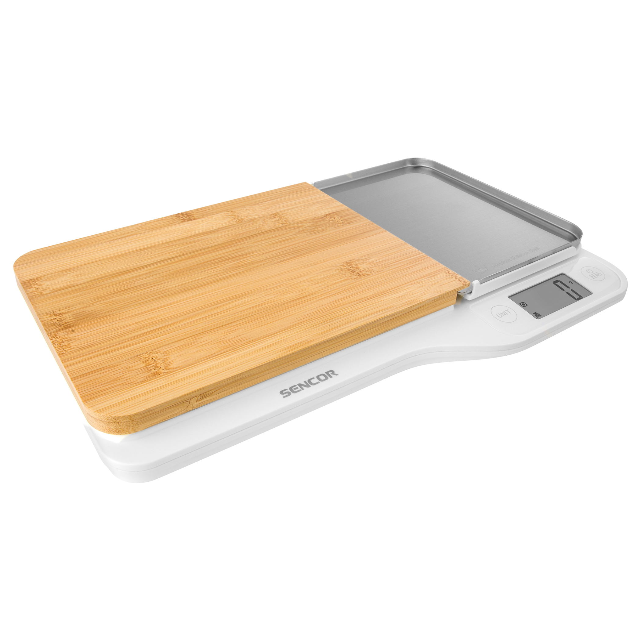 ميزان مطبخ إلكتروني مع لوح تقطيع من الخيزران الطبيعي و صينية ستانلس ستيل قابلة للفصل